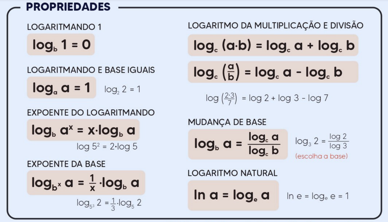 As propriedades básicas dos logaritmos são fundamentais para sua manipulação algébrica. Por exemplo:
